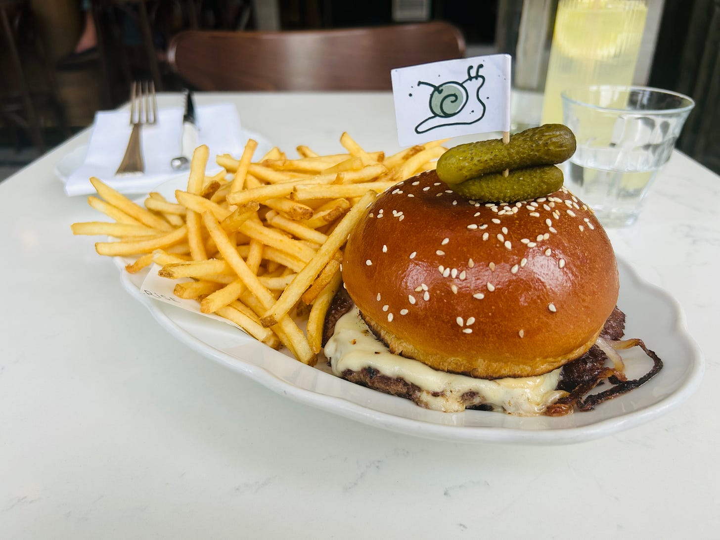 Famous last meal while on Team Eater, the burger from Petite Cerise, a French-inspired bistro at 1027 7th St. NW in D.C. As of press time, it appears that the cute eatery is closing permanently on Sunday, August 24.